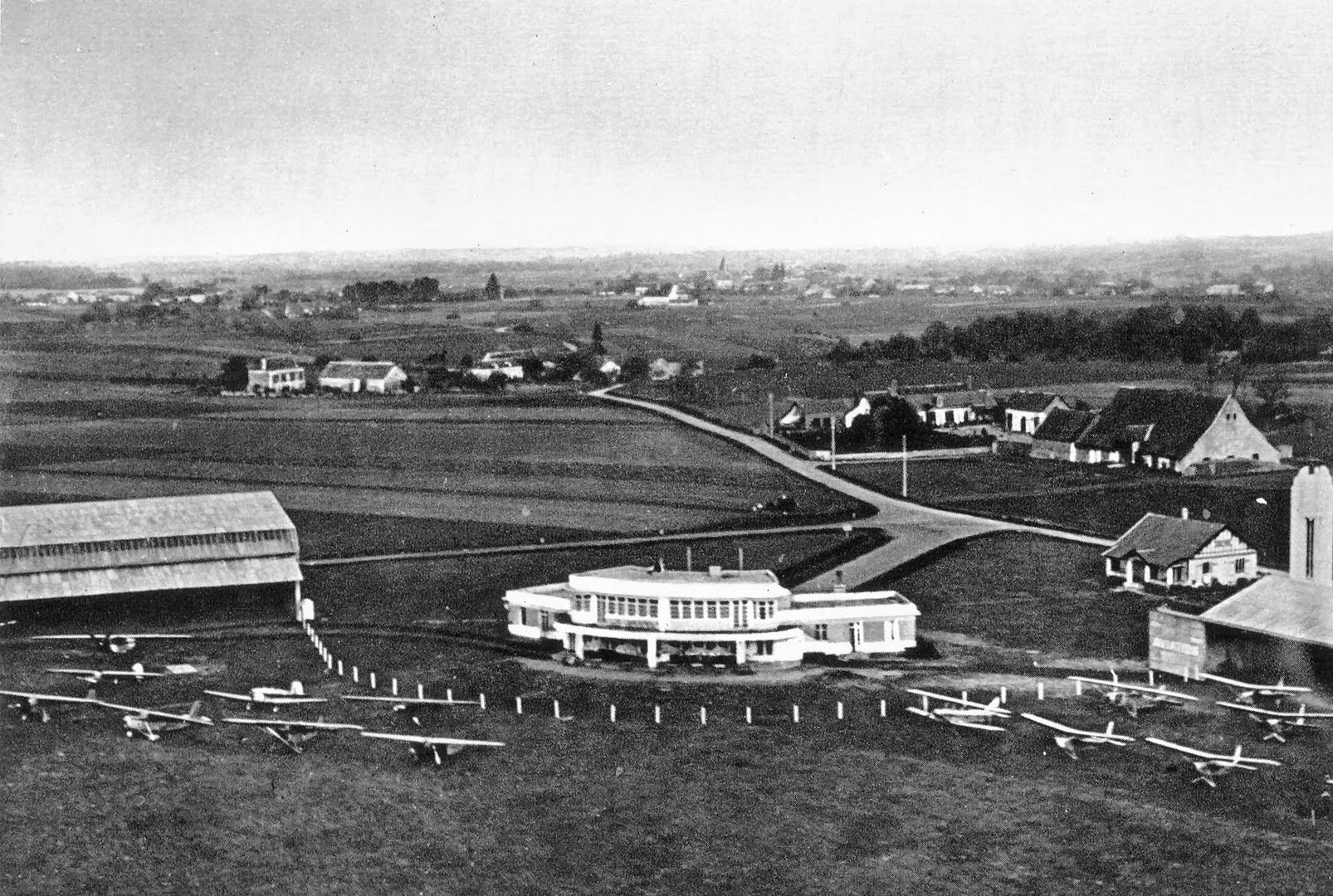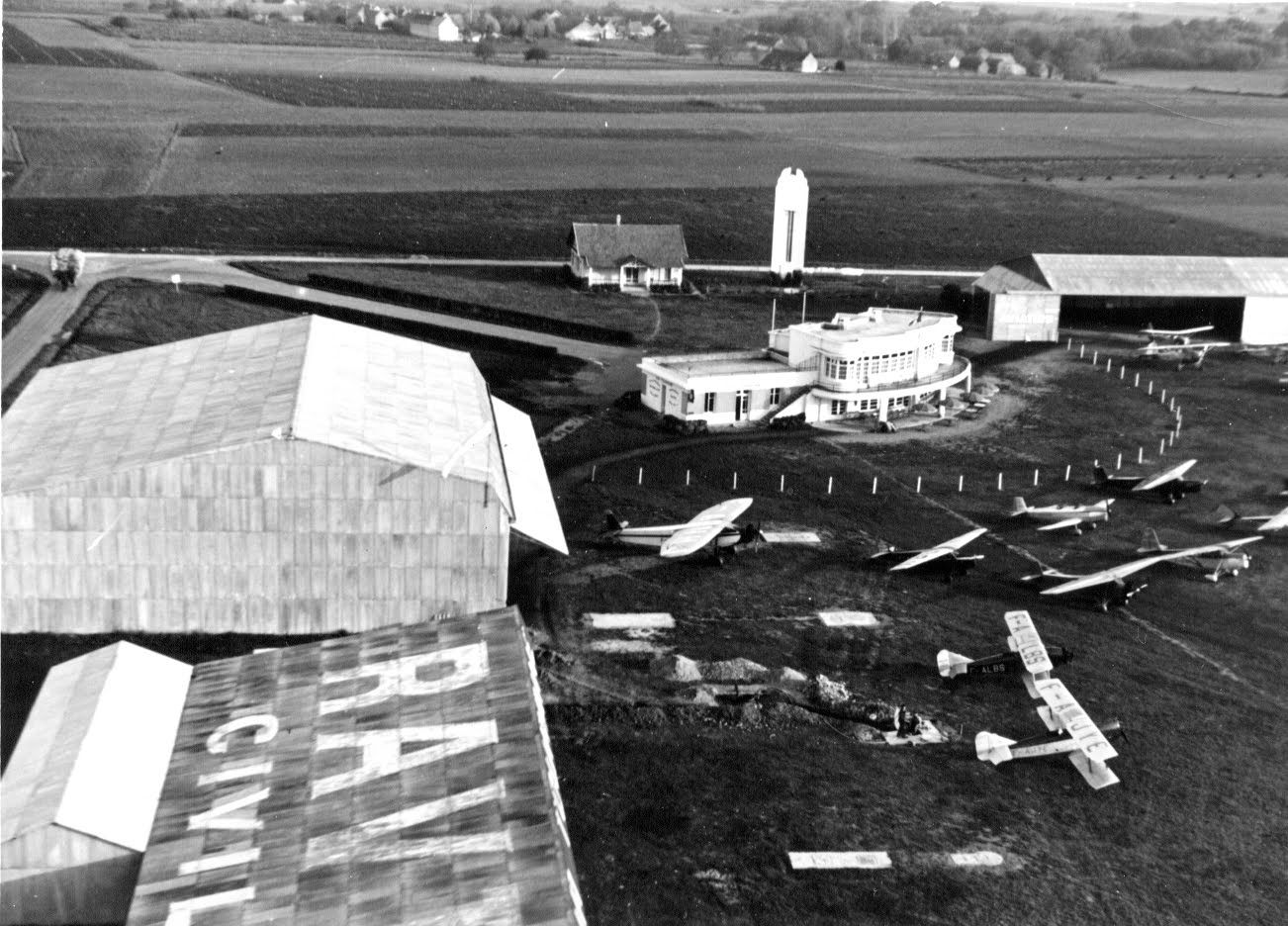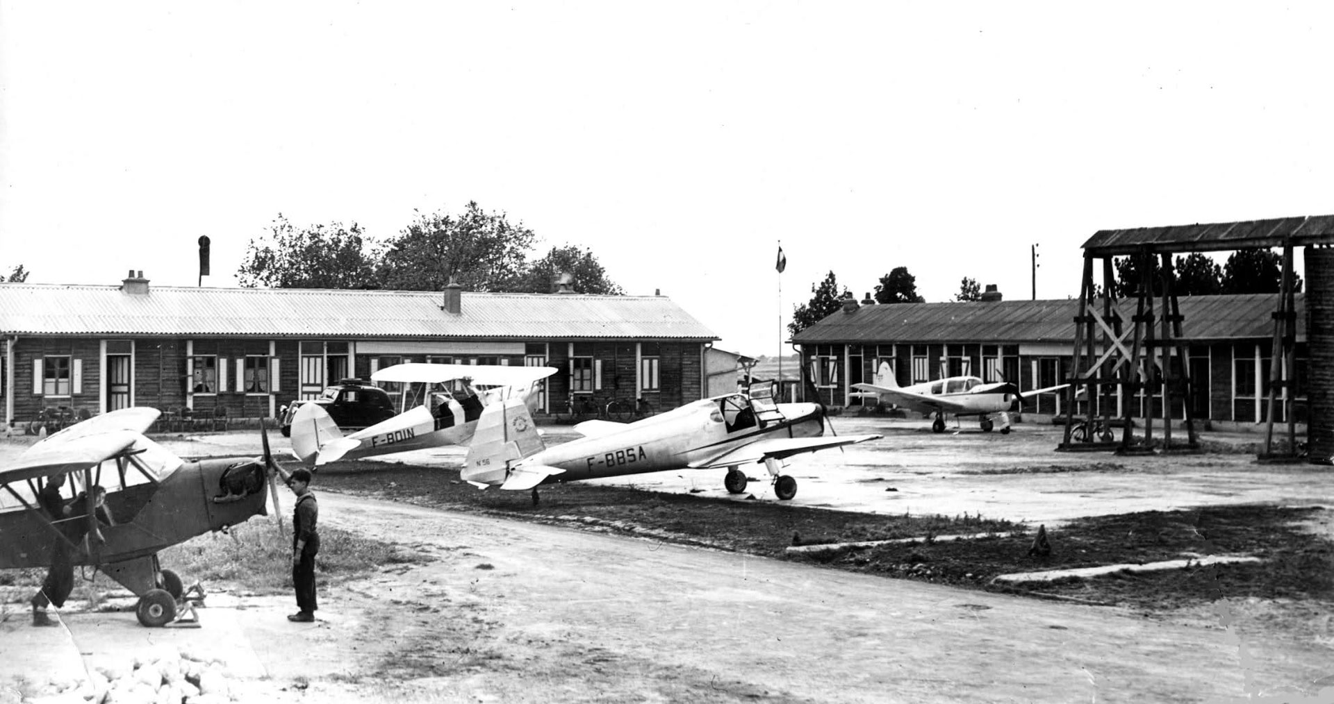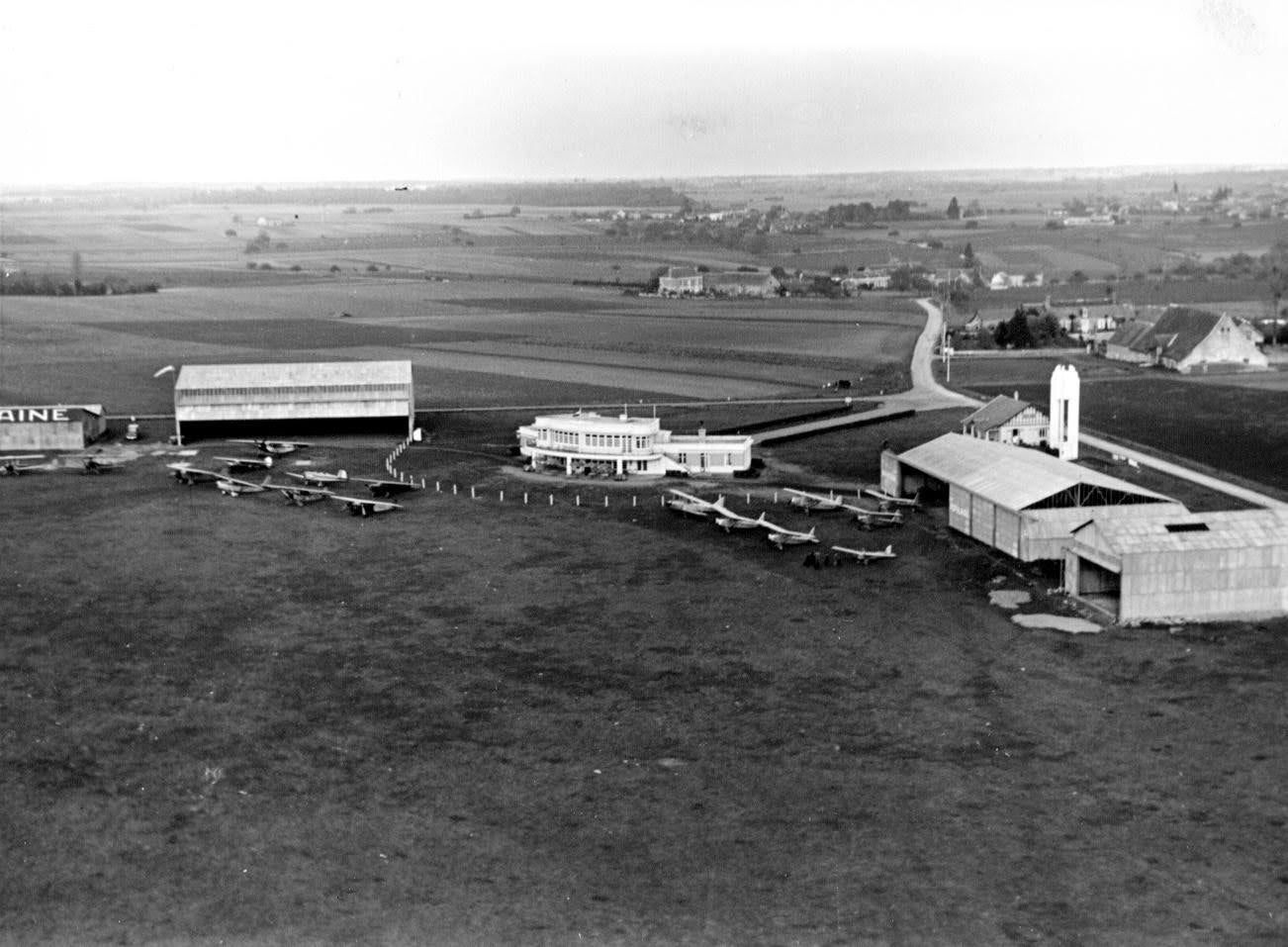 L’inscription « RAVT CIVIL » sur le toit du hangar indique un point de ravitaillement des avions civils. Il est possible d’identifier quelques appareils stationnés sur le terrain : F-AJYE (Caudron 232 n°6509.26 appartenant à Air-Touraine) et F-ALBS (Caudron 233 > Caudron 230 n°6526.1 > 14).