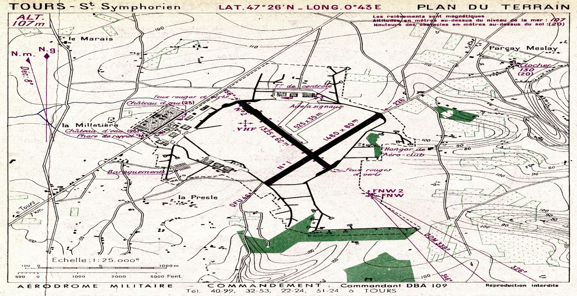 En 1955, l’aérodrome de Tours est le troisième de France ouvert à la navigation civile après ceux de Paris (Le Bourget et Orly). le terrain est officiellement désigné pour le dégagement de l’aéroport d’Orly. L’arrêté du 23 novembre 1955 officialise que « l’aérodrome a été affecté, à titre principal, au ministère de la défense et à titre secondaire, au ministère des travaux publics, des transports et du tourisme, en charge de l’aviation civile ».