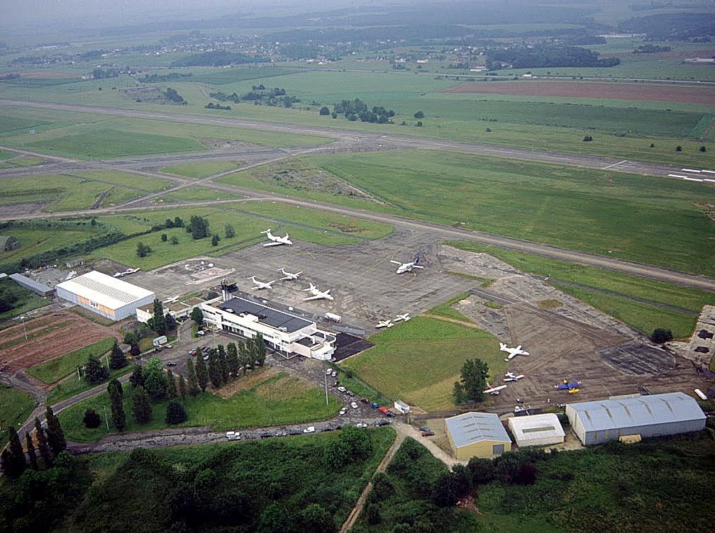 Cette vue prise en juin 1998 permet de distinguer l’actuelle piste (02/20), l’aéroport civil, mais également des traces de l’ancienne piste 05/23 qui vont des hangars au premier plan vers la déchèterie de Parçay-Meslay.